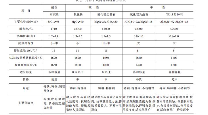 爐襯料的選用近年來,由于中頻變頻感應(yīng)爐**節(jié)能,新安 裝的感應(yīng)爐中變頻爐、中頻爐占了相當(dāng)?shù)谋戎?。爐 襯材料的選擇尤為重要,特種鋼所用的爐襯材料必 須具有優(yōu)良的耐高溫,耐侵蝕,熱面不產(chǎn)生裂紋,不 滲漏等特性,以避免意外事故發(fā)生。我們查閱國內(nèi)外大量資料,在科研指導(dǎo)下,選擇以電熔剛玉 為主要原料,顆粒料采用多級(jí)級(jí)配,適當(dāng)添加電熔尖晶石粉與高性能的無水粘結(jié)劑,以干料配 制,并攪拌均勻、 特制雙層包裝。用戶使用時(shí)無需攪拌即可直接筑爐,以滿足現(xiàn)階段市場需求。幾種干式搗打料性能對(duì)比現(xiàn)將市場上鑄鋼、特種鋼使用的幾種干式搗打料與我廠干式搗打料進(jìn)行綜合分析對(duì)比,詳見表 +。