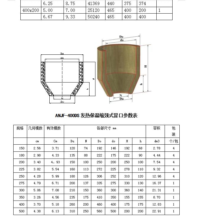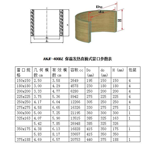 ANJF-400D發(fā)熱保溫冒口套可以有效地提高工藝出品率,減小切割.打磨和焊補(bǔ)工作量,從而降低鑄件成本,縮短生產(chǎn)工期.